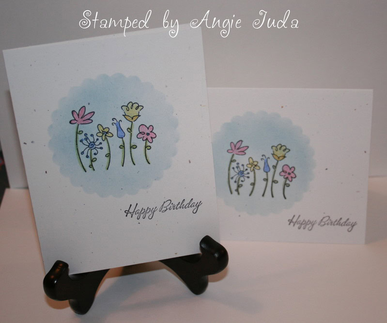 Stamps: Friends are like Flowers & Warmest Regards Ink: Black Stazon, Brocade Blue Cardstock: Confetti White Other: Sponges, Scallop Punch, SW Markers, Pretty in Pink, Barely Banana, Almost Amethyst, Certainly Celery & So Saffron.
