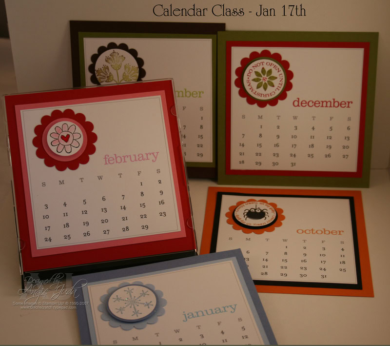 Calendar Class – Jan. 17th, 7pm to 9pm. The fee is $15 and you’ll need to bring your own adhesive. I need prepayment for this class, the supply list is lengthly!! I accept Paypal or you can mail me a check. Supplies are available for purchase $20 with FREE SHIPPING.