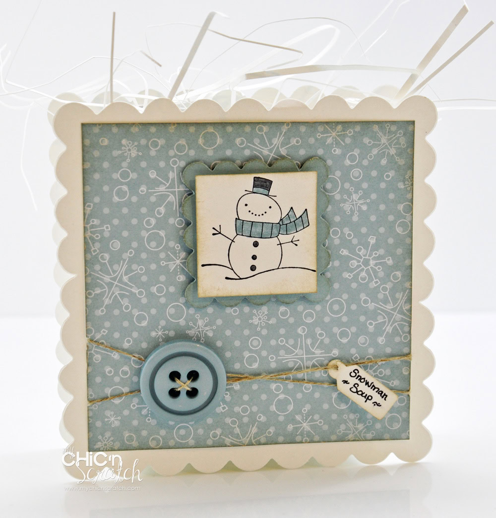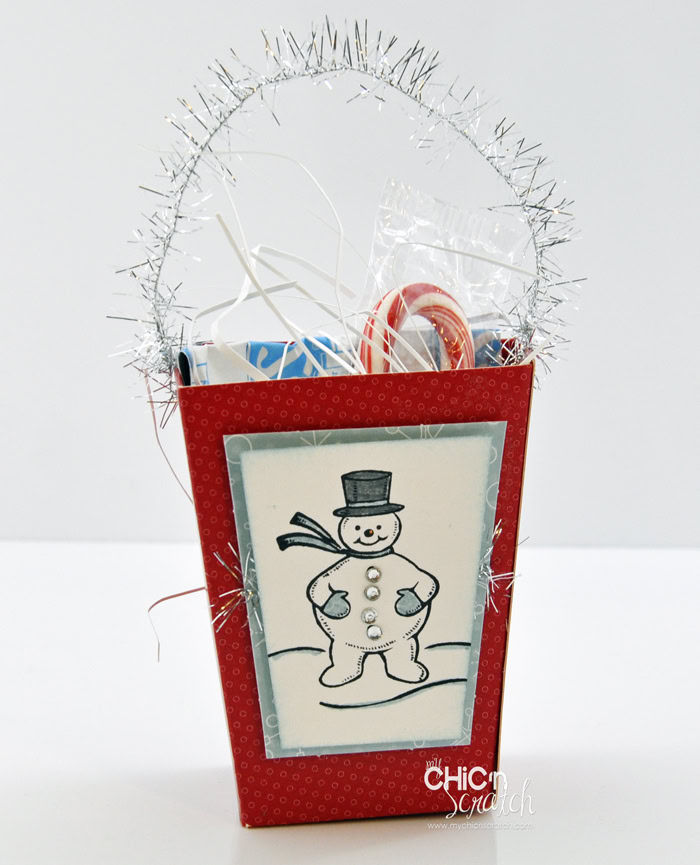 Isn't this box too cute!!! When I got home from the doctors office yesterday I had a package on my kitchen counter waiting for me. And when I opened it up….Colleen had sent me three darling boxes. I couldn't get to my computer fast enough to tell her thank you …..what's so ironic about it….. is…..yesterday I posted the snowman soup box using the exact same tall top note box. Isn't it funny how we both came up with the same idea…..but yet our boxes look totally different.