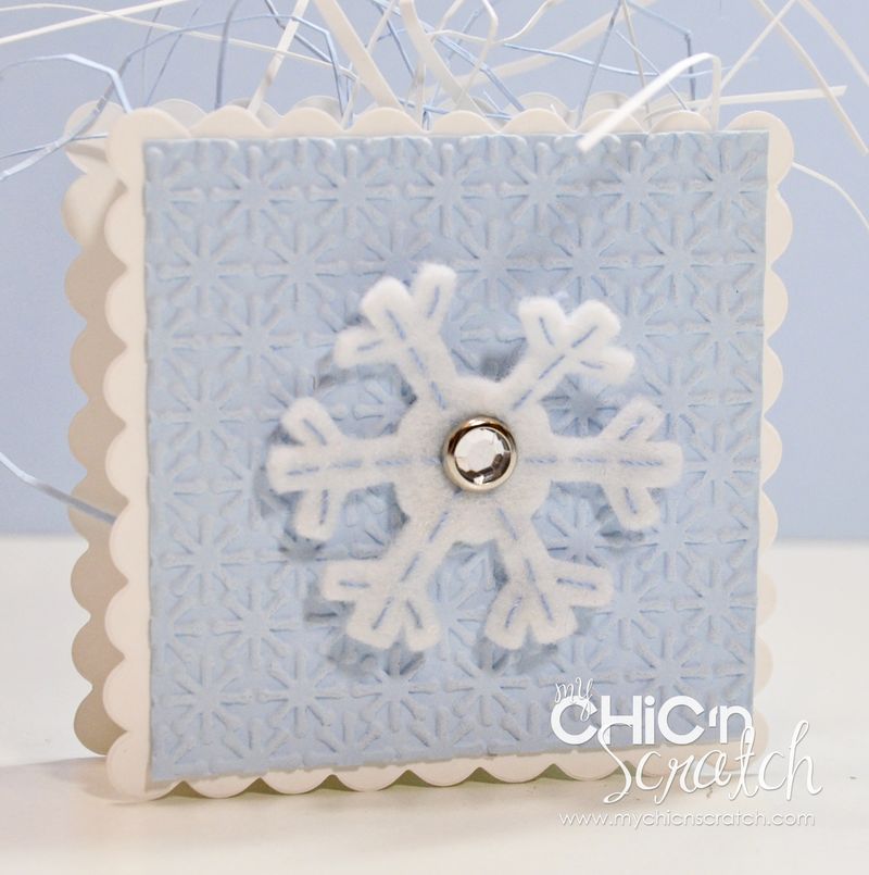 - Accessories: Simply Scored Scoring Tool #122334, Snail Adhesive #104332, Snow Burst Embossing Folder #124096, Big Shot Die Cut Machine #113439, Scallop Squares Duo Die #120903, Winter Wishes Stitched Felt #124108, Rhinestone Brads #113144, Paper Piercer #116631, Mini Glue Dots #103683, Frost White Shimmer Paint #116854, Sponges #101610