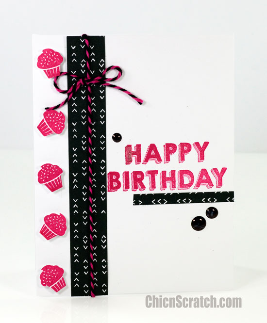 Paper: Whisper White 100730, It’s My Party Designer Series Paper 140552,Sahara Sand 121043, Basic Black 121045, Melon Mambo 115320, Thick Whisper White 140272
