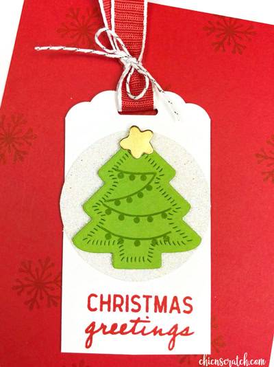 5. Punch out a 2 inch Circle in the Sparkle Glimmer Paper. Layer to the tag.