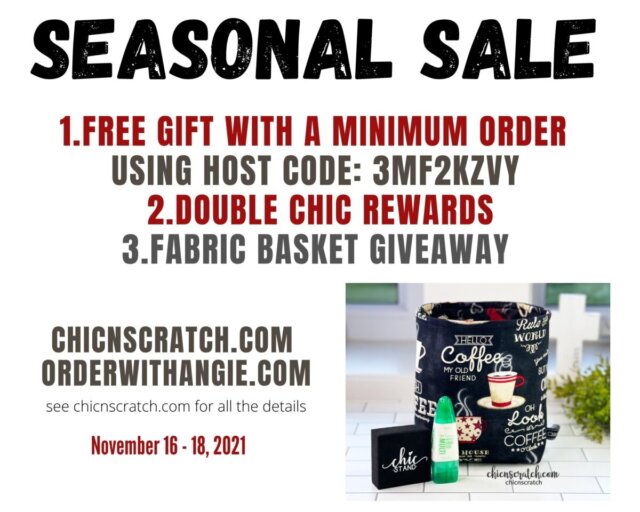Every person that places an order November 16th – 18th will be entered to win the Coffee Fabric Basket that includes a Chic Stand & Liquid Glue (or the Gnome Basket).